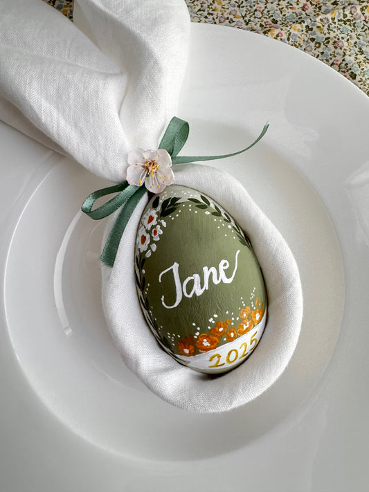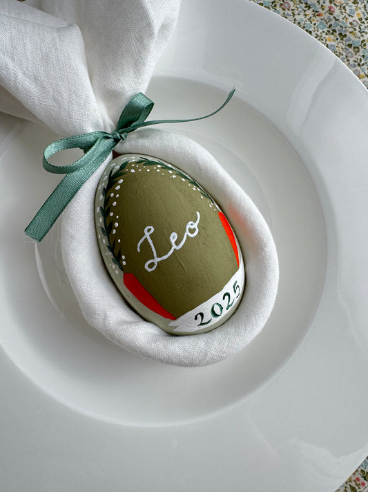 Hand-Painted Personalised Wooden Easter Egg (Bunny with Hat) - MADE TO ORDER