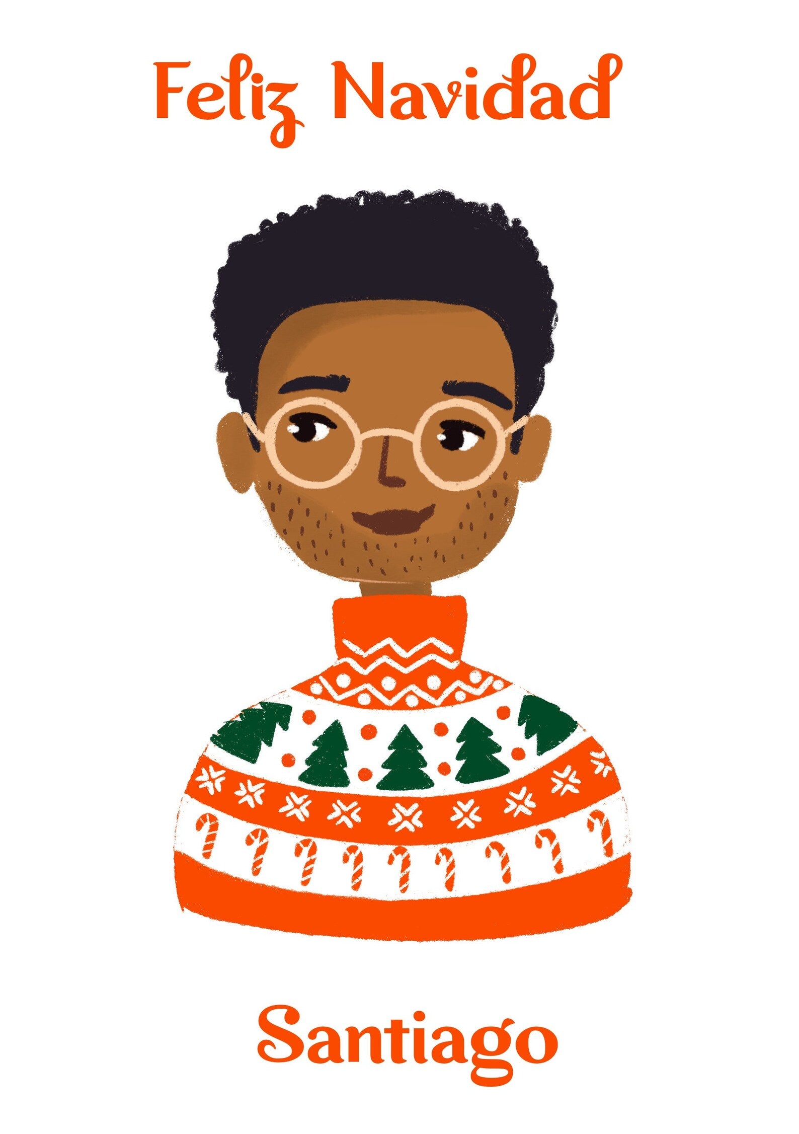 These cool Christmas cards for boys and men can per personalised with the name of the lucky recipient and the message can be written in 4 different languages.