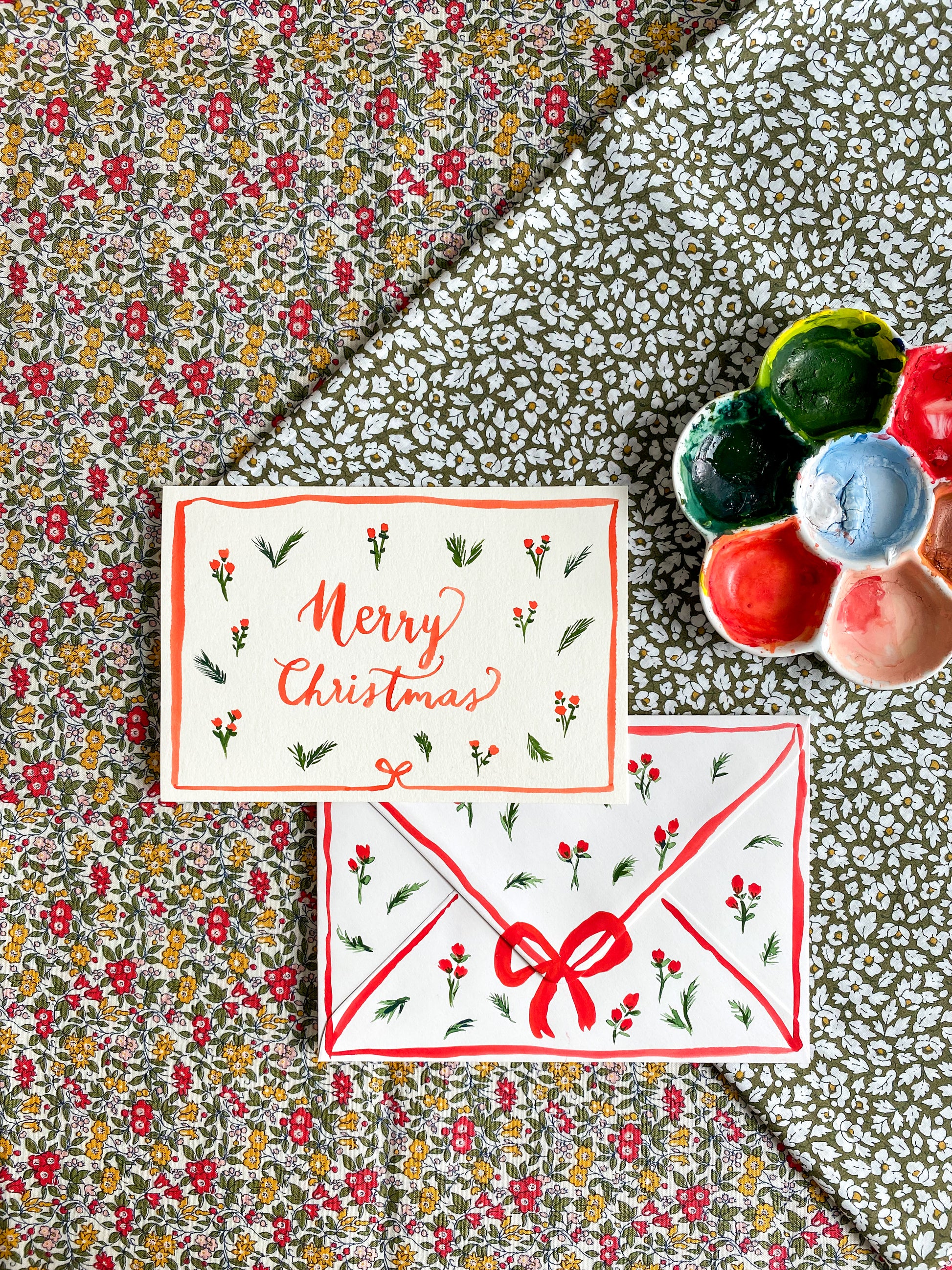 - Set of 1 hand-painted notecard and 1 hand-painted envelope